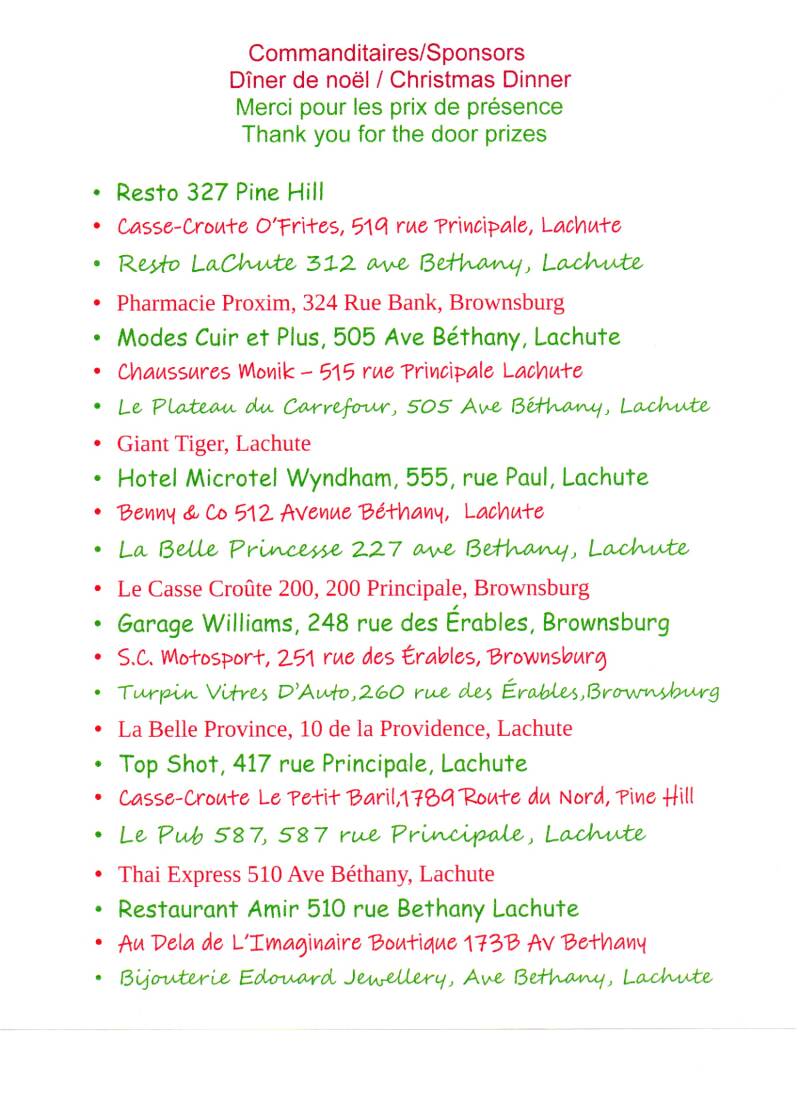 Commanditaires dîner de noël